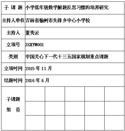 小学低年级数学解题反思习惯的培养研究……董秀云