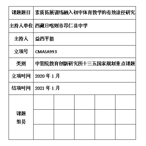 素质拓展训练融入初中体育教学的有效途径研究……益西平措